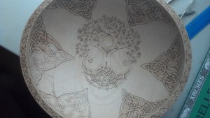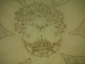 I have put in another 6 hours of shading and I am nearly done with all of the inside designs. I still have the knotwork on the outside to shade, so there is probably another 6-8 hours of work left to do. But because my larger pieces are slower sales, I have to find time between working on magnets, tiles, and pendants. Here’s my current progress –
