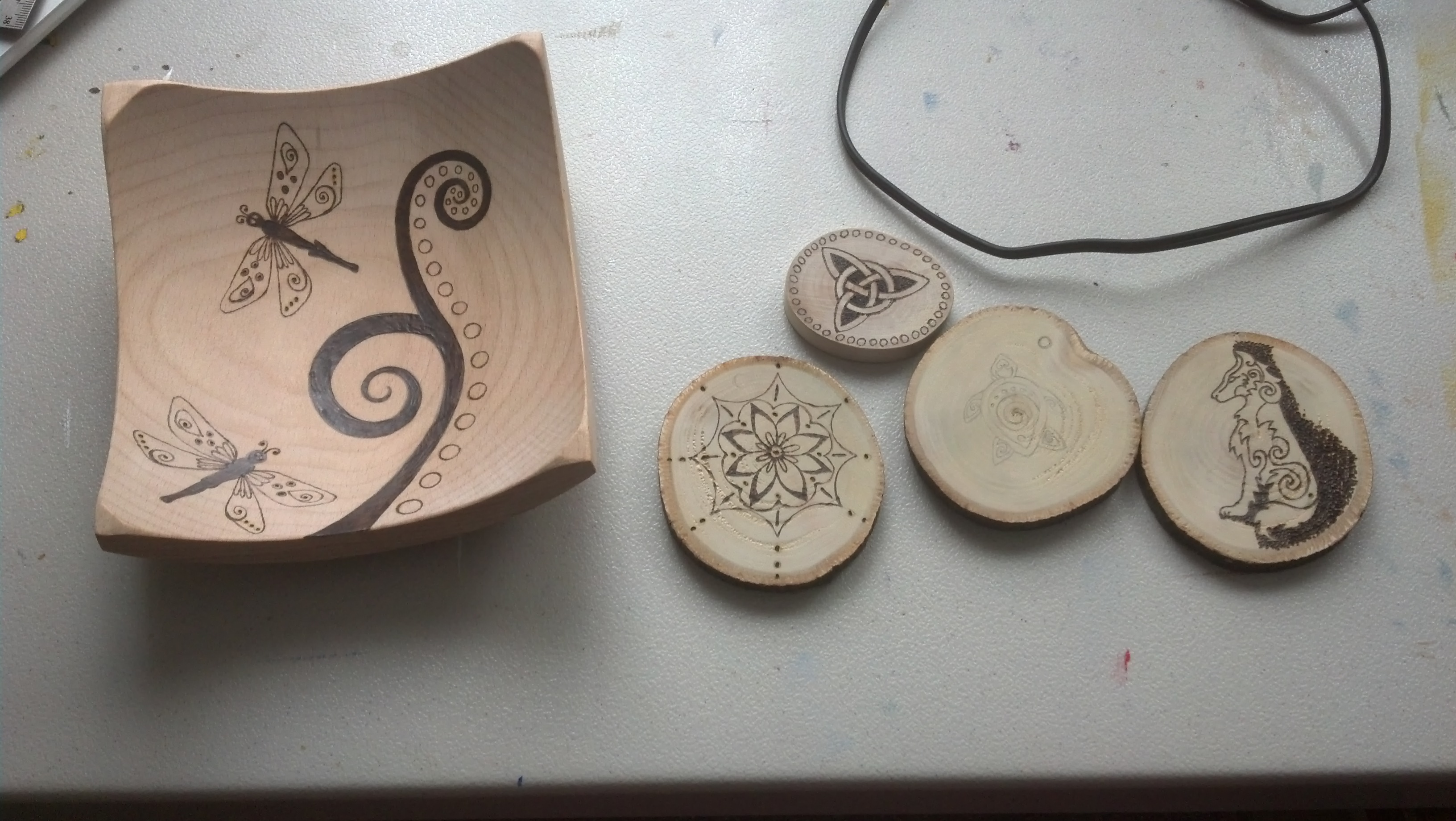 I’m currently working on upping my holiday ornament stock for upcoming shows. I have the SUNY Plattsburgh Craft show this weekend. It is one of the bigger shows in the area and was a good venue for me last year. Here are some recent magnets, ornaments and a square bowl in progress.