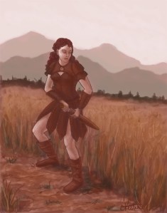 In my spare time, I have also been working on my digital painting skills. One of my goals for improvement earlier this year was to work on more dynamic figures and backgrounds. The following two sketches are a start to that. For the first, I referenced stock photos by Chonastock on Deviant art for the pose. The second sketch was inspired by Brom.